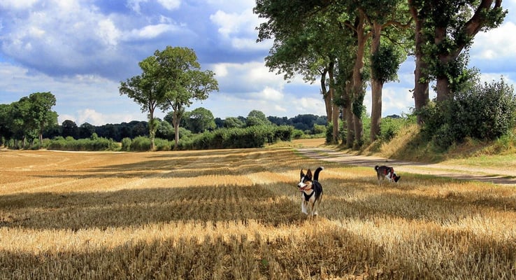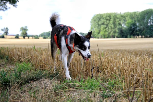 Erntezeit - Freilaufzeit auf den Stoppelfeldern. Eine schöne Alternative zum üblichen Spaziergang, weil da einmal so richtig mit Speed gelaufen werden kann - ohne ziehen zu "müssen".