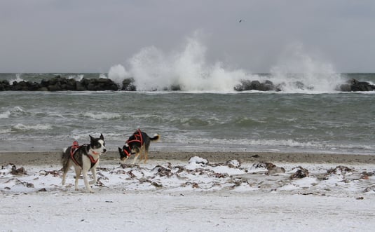 Der Schnee ist dieses Jahr im März sehr unterschiedlich über das Land verteilt. Einige Regionen versinken geradezu darin, woanders ist so gut wie nichts. Wir sind an die stürmische Ostsee nach Damp gefahren und haben den leeren Winterstrand und die zugewehten Dünen genossen.