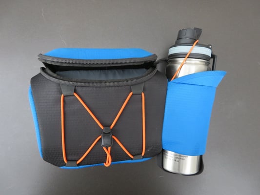 Als sehr praktisches Zubehör gibt es eine "Belt-Bag" Gurttasche mit innen liegender Netztasche, äußerem Gummizug zu Befestigung von Jacken oder Zubehör und einer Halterung mit Gummizugsicherung für eine Wasserflasche (die natürlich nicht zum Lieferumfang gehört). Problemlos passen die üblichen kleinen Kunststoff-Trinkflaschen in die Halterung. Ein Gurtband verhindert das Durchrutschen der Flasche nach unten. Ich verwende eine Edelstahl-Wasserflasche mit einem Fassungsvermögen von 530 ml (18 oz.). Man kann sicherlich auch längere Flaschen nehmen, allerdings passt dann ggf. das Sicherungsgummi nicht über den Deckel. Auch in Sachen Flaschendurchmesser ist der Halter limitiert, da das Taschenmaterial die Flasche stramm und griffig hält und daher nur wenig bis gar nicht dehnbar ist.