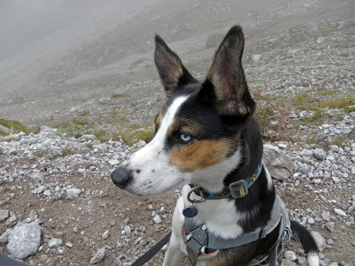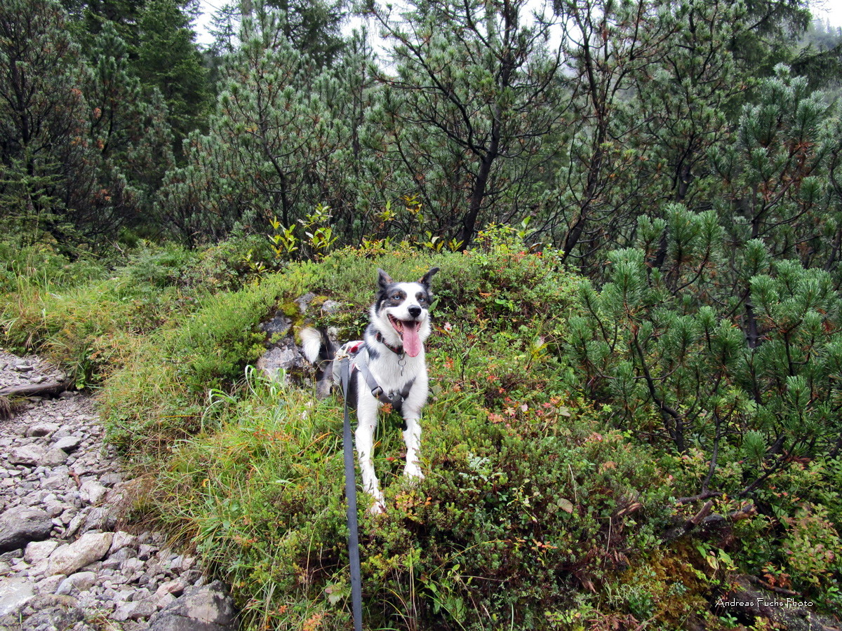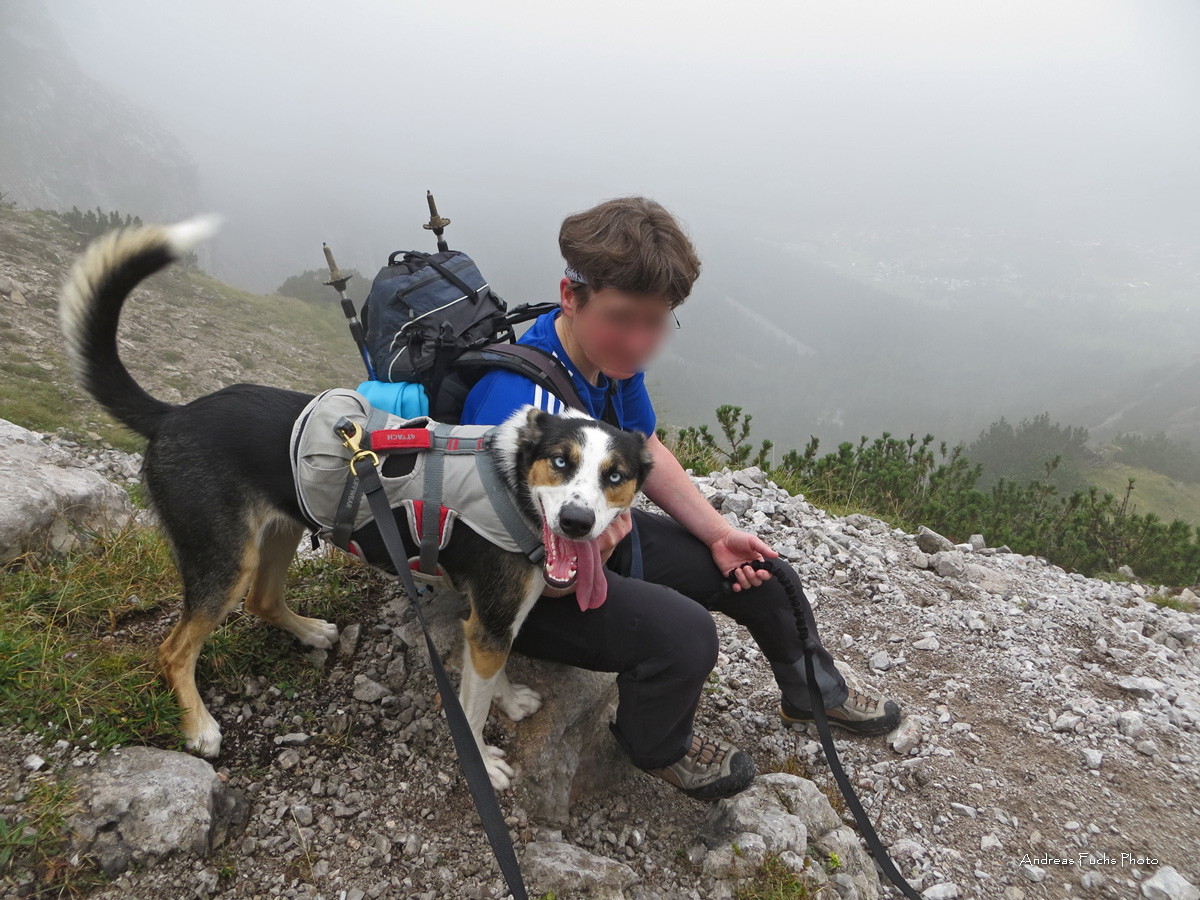 Leider hatten wir einen sehr neblig-wolkigen Tag erwischt, die Wolkenuntergrenze lag so um die 1.800 bis 2.000 m, so dass die Aussicht zwar begrenzt, aber das Wandern auf der nach Süden augerichteten Strecke, sehr angenehm kühl war. Leider hatte dies auch einen teilweise Ausfall des GPS-Signals zur Folge, was man an der sehr geraden Wegspur auf der Karte sehen kann.