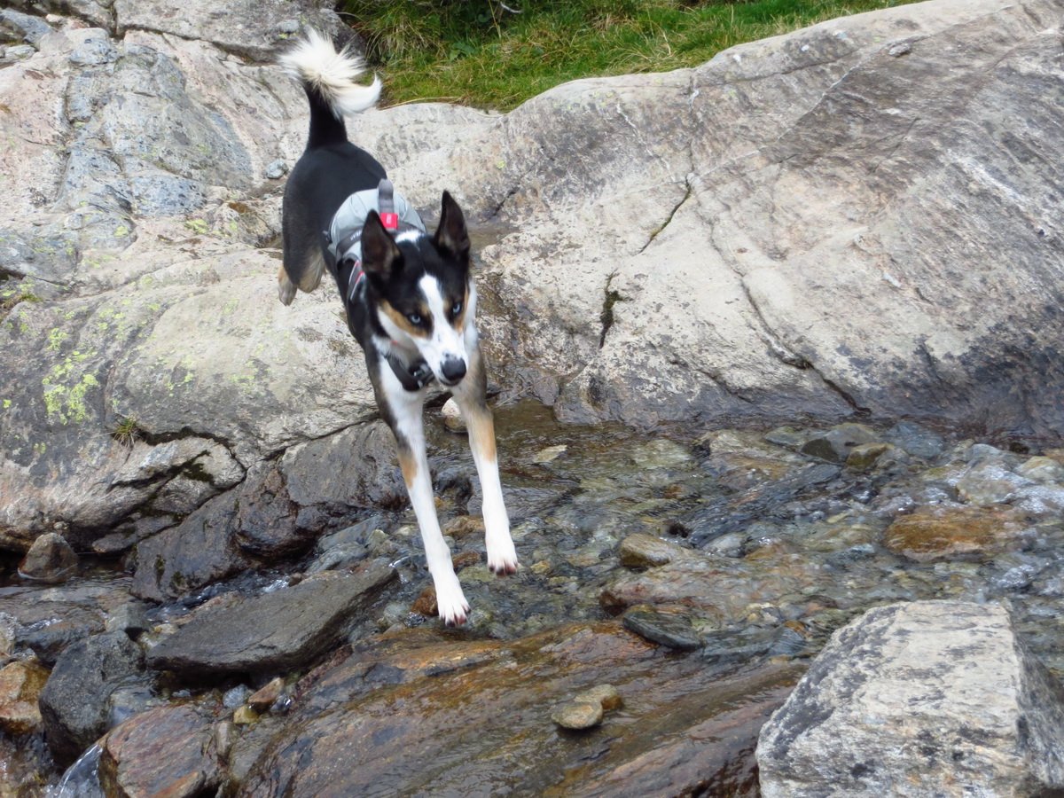 Ayla und Sitka bewältigten die Blockkletterei einfach und sicher, sie waren Spitze, hoch wie runter, keine Unsicherheiten. Lediglich Sitka haben wir an zwei steileren Stufen geholfen.