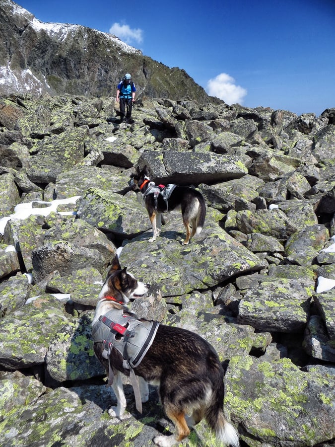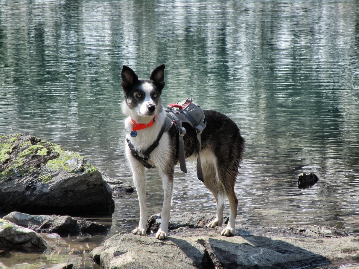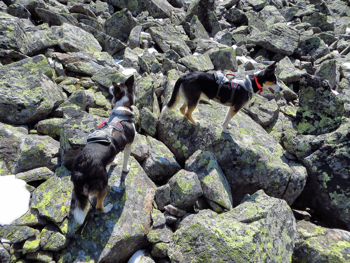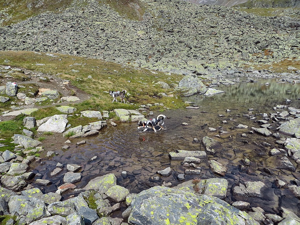 Auch der See selbst ist weitestgehend von Blockwerk umgeben, lediglich an der Talseite ist Wiese. Unsere Hunde lieben das Gehen auf den Blöcken, da wir die Motorik einmal ganz anders gefordert.