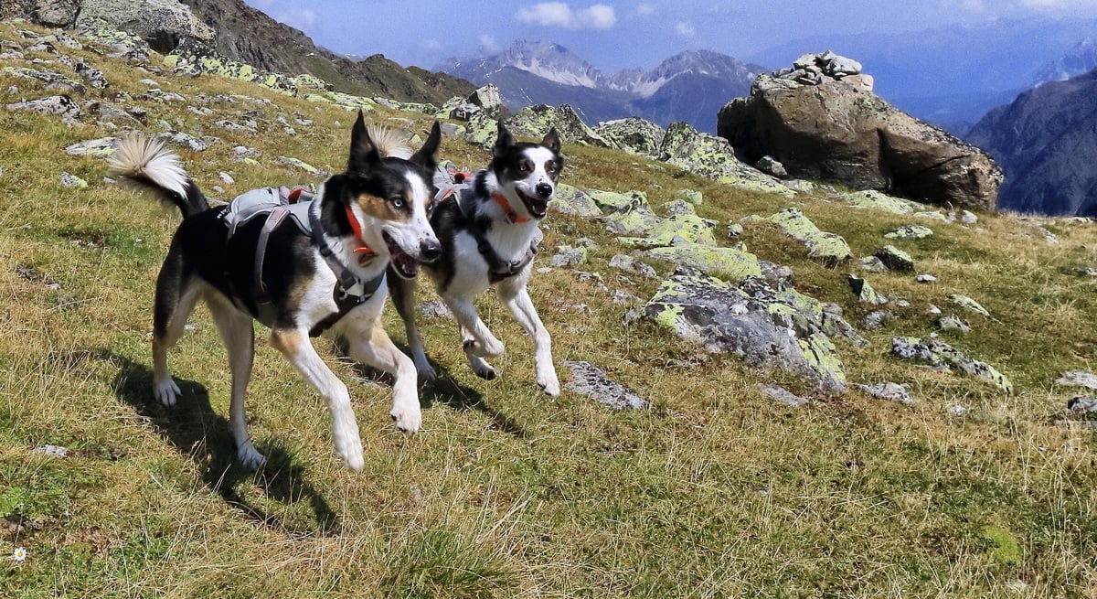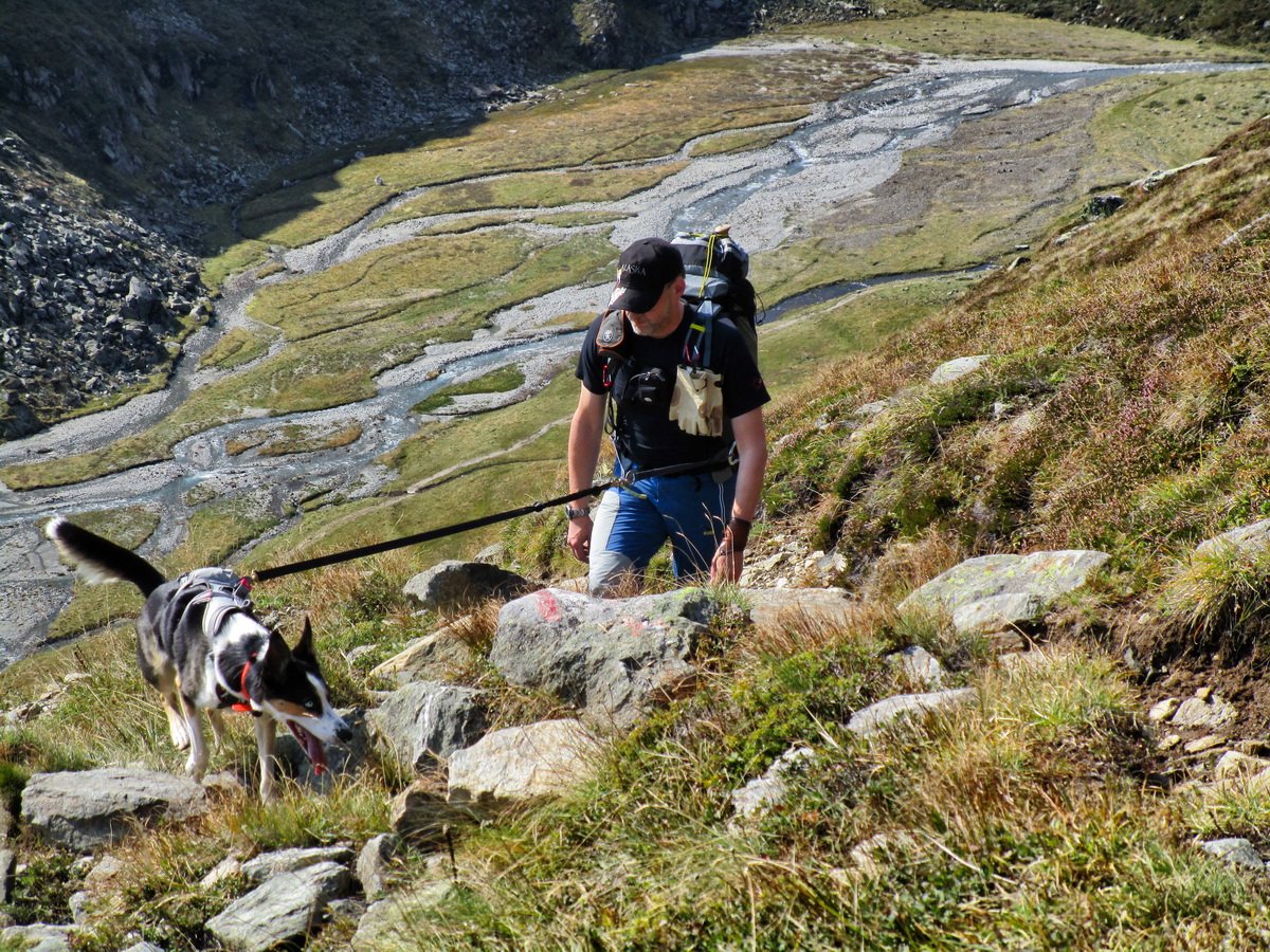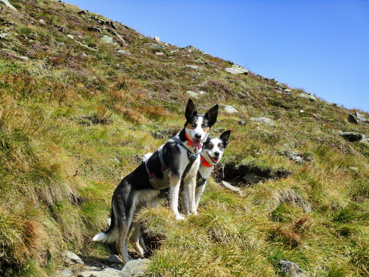 Und beim Bergabgehen haben wir gleich einmal die Gelegenheit genutzt, mit den Mädels den kontrollierten Freilauf zu üben. Hört sich etwas komisch an, aber bei und gibt es ja kein "Fuß"-Kommando. Die Mädels sind, wegen des Zughundesports ja nicht im klassischen Sinne "leinenführig".