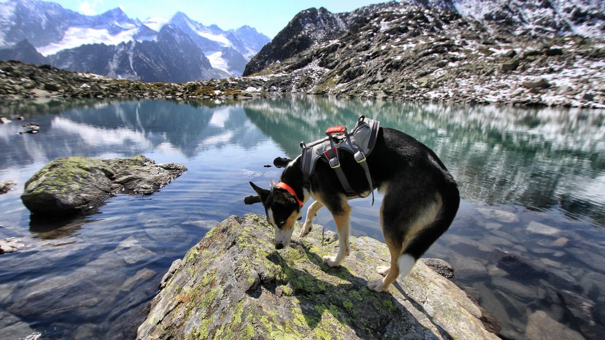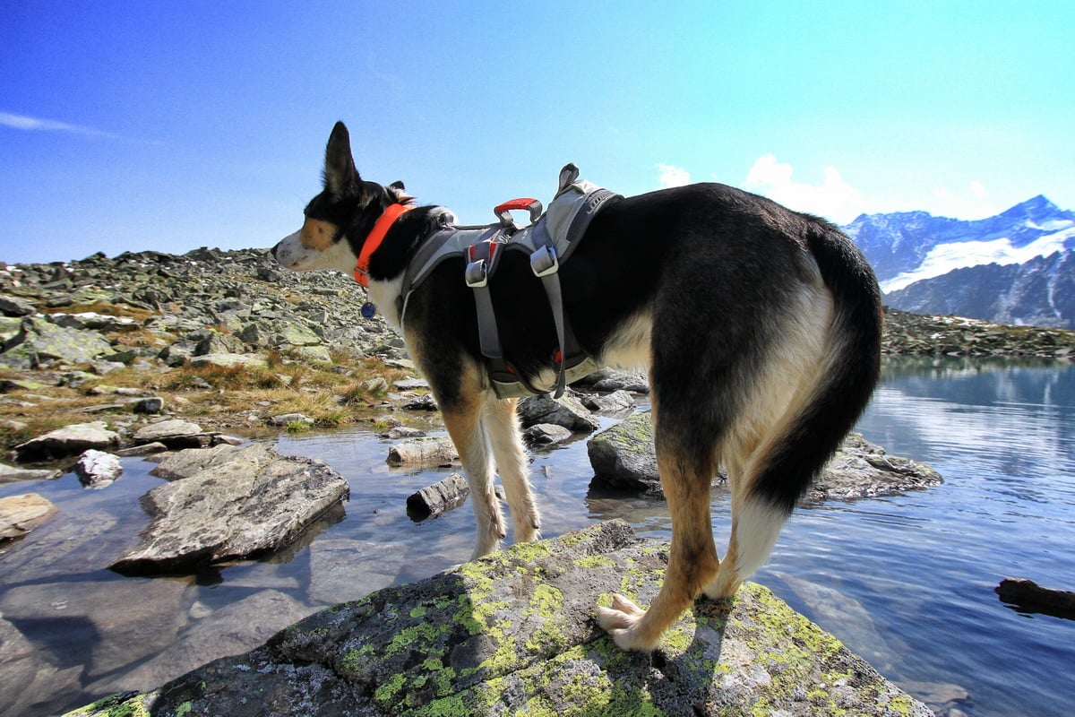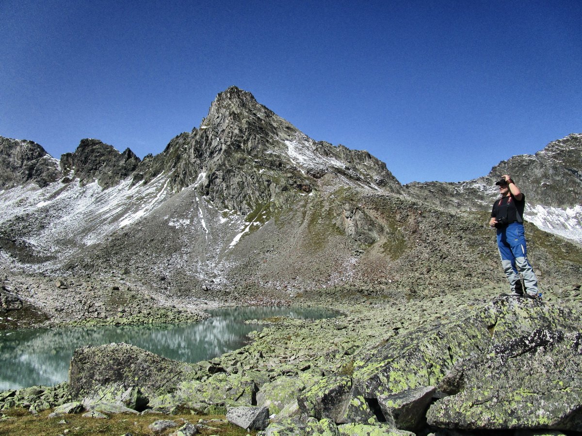 Zentral über dem See thront die Rinnenspitze. Wer die Doggies hier betreut zurück lassen kann, den erwarten noch einmal ca. 45 Minuten Weg bis zum Gipfel. Dabei sollte man aber eine Klettersteigausrüstung dabei haben.