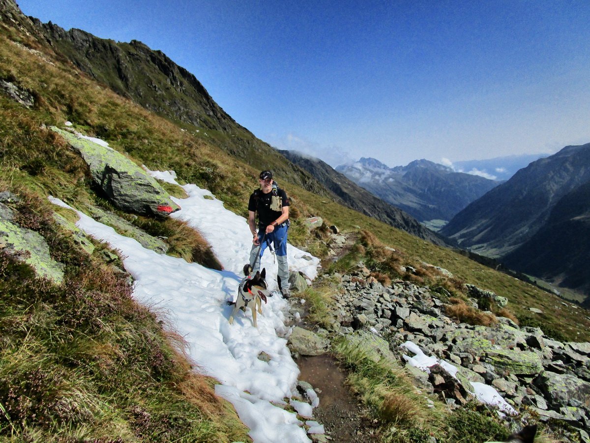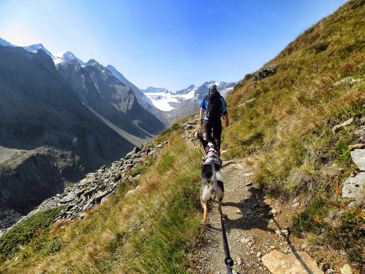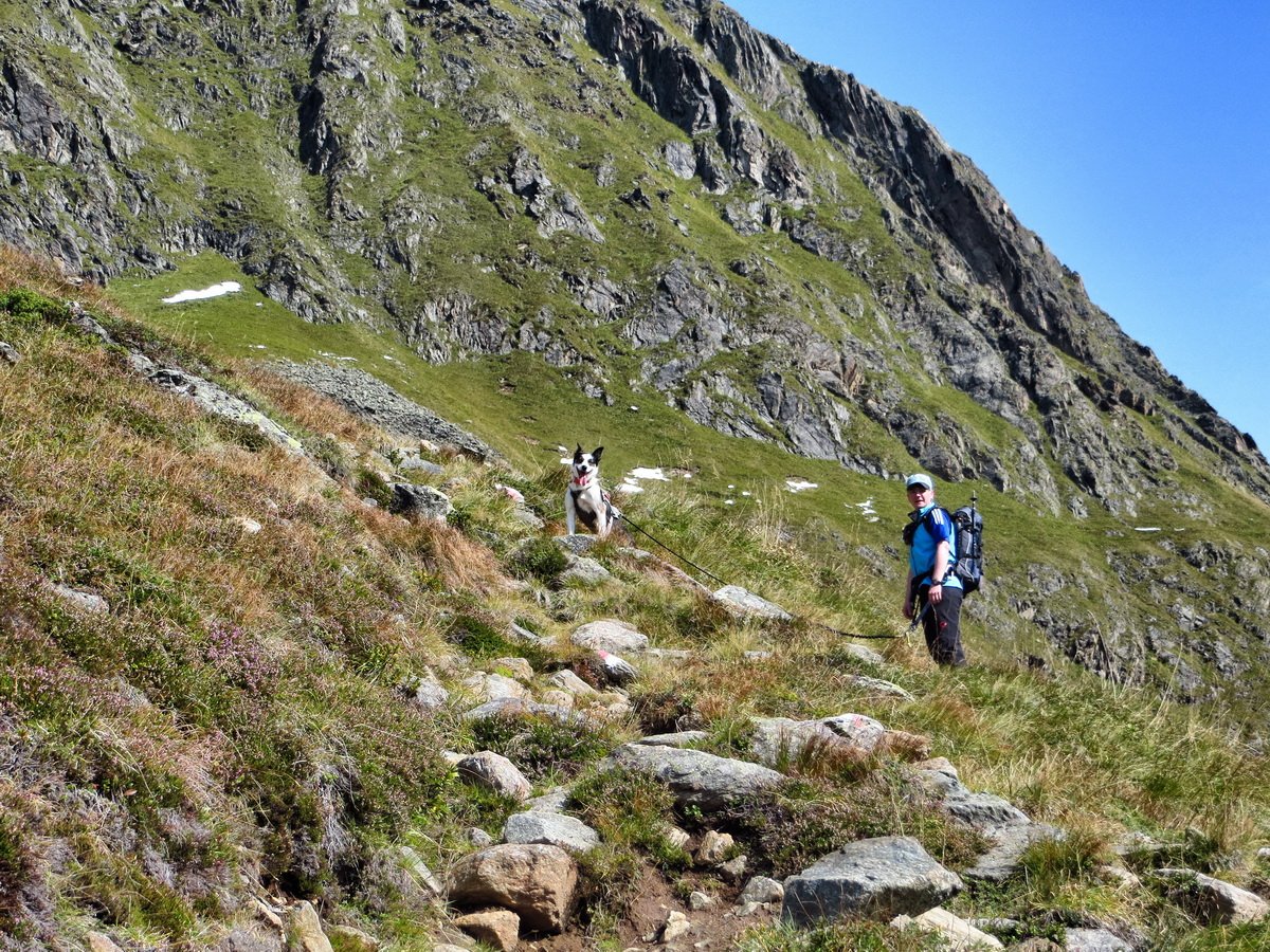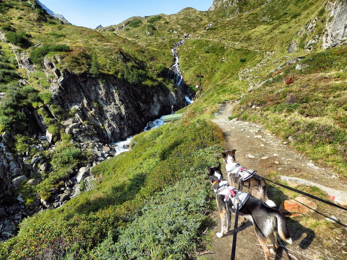 Die Tour beginnt an der Oberrissalm (1.742 m) im Stubai und führt zunächst zur Franz-Senn-Hütte (2.147 m) und dann weiter zum Rinnensee. Wir hatten auch die Rinnenspitze (3.000 m) im Plan, da aber der Gipfelteil besser nur mit Klettersteigausrüstung zu erreichen ist, haben wir wegen der Doggies darauf verzichtet.