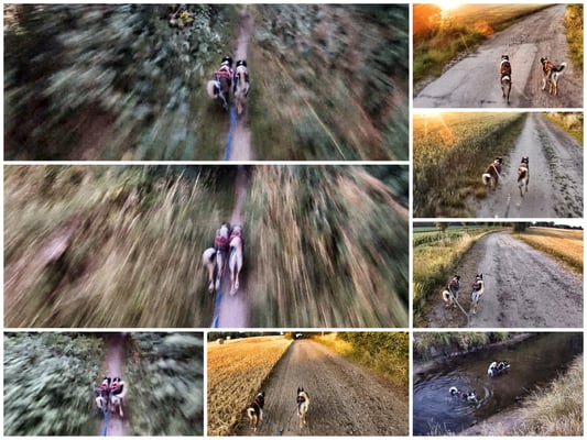 ... wie wir unsere Touren fahren. Ob ich die Doggies unterwegs viel motivieren muss, wie ich sie anfeuere, welche Kommandos ich gebe, ob sie im Trab oder Galopp laufen und wenn, wie lang die