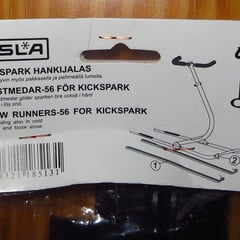 Kunststoffkufen für Schneefahrten und widrige Wegeverhältnisse. Die Kufen sind 56 mm breit und werden auf die Metallkufen des KickSparks geklemmt. Zusätzlich sollten sie mit einem Kabelbinder vorn am Rahmen gesichert werden.