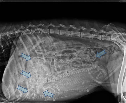 Am rechnerisch 58. Tag der Belegung erfolgte dann die Röntgendiagnostik, um so eine Mengenbestimmung vornehmen zu können. Fünf Köpfe und Wirbelsäulen waren zu erkennen.