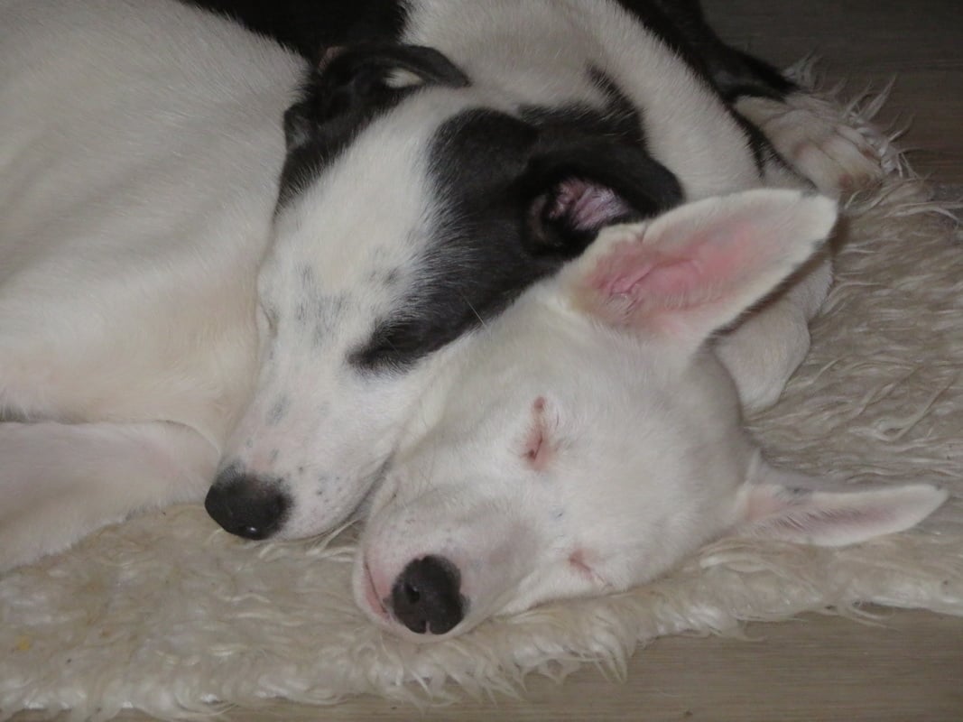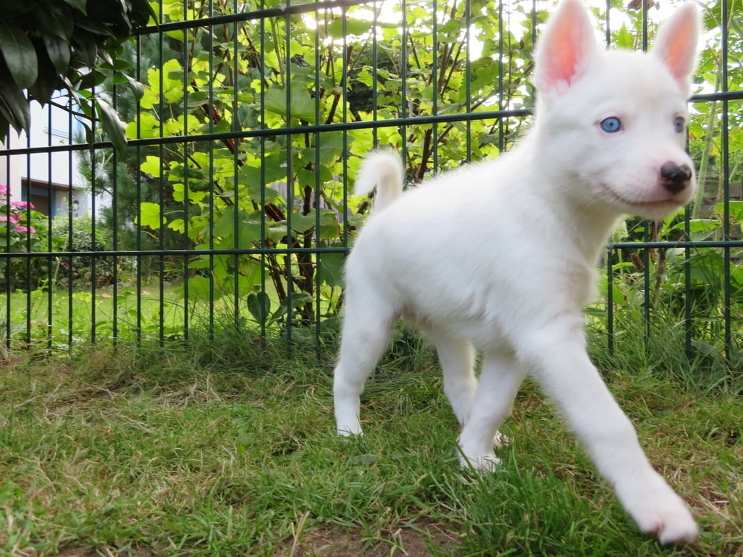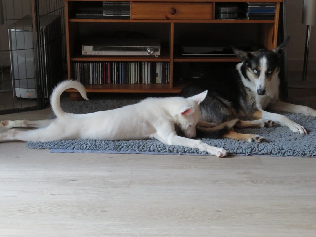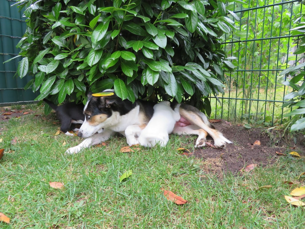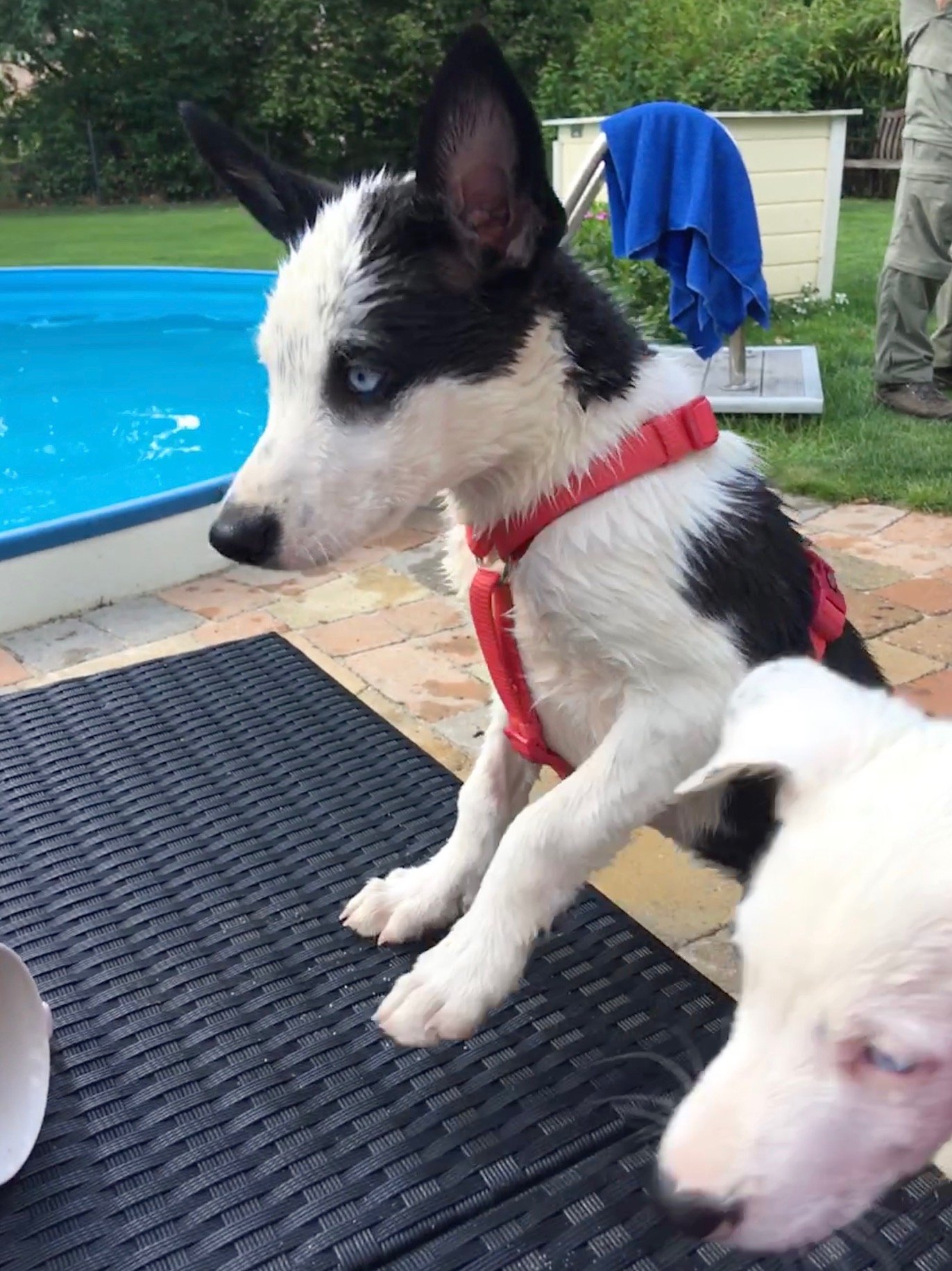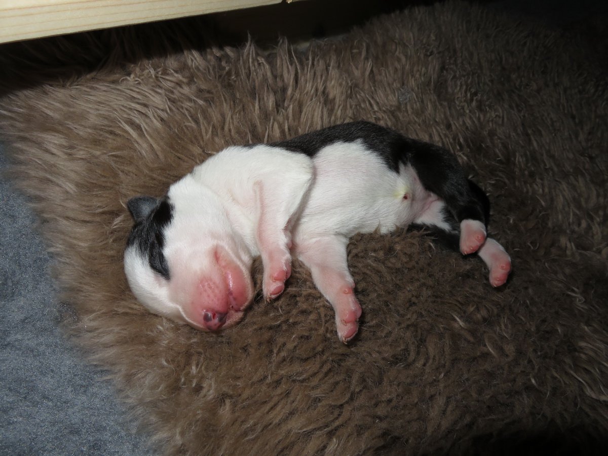 So ist Ayla jetzt stolze Mama von insgesamt drei zucksersüßen Welpen. Frosty, die weiße Hündin, Arik, der weiße Rüde, und Smacks, die schwarzweiße Hündin, die wegen des schwarzen Fells um das linke Auge auch die "Piratenbraut" genannt wird.