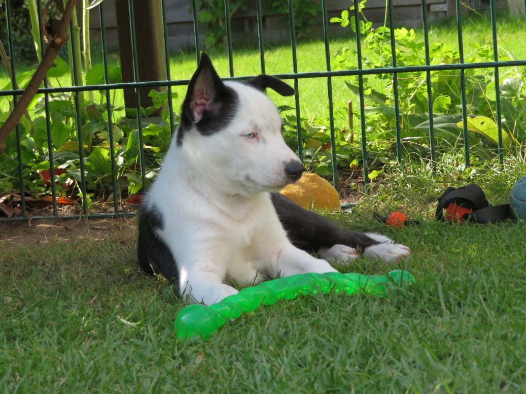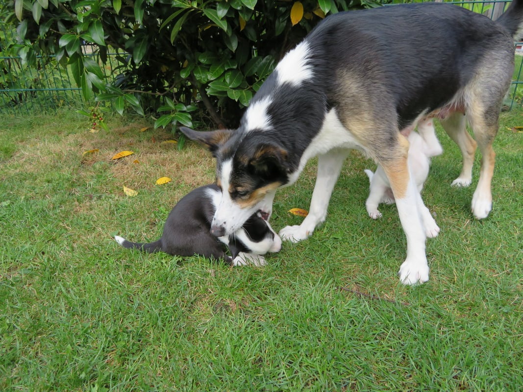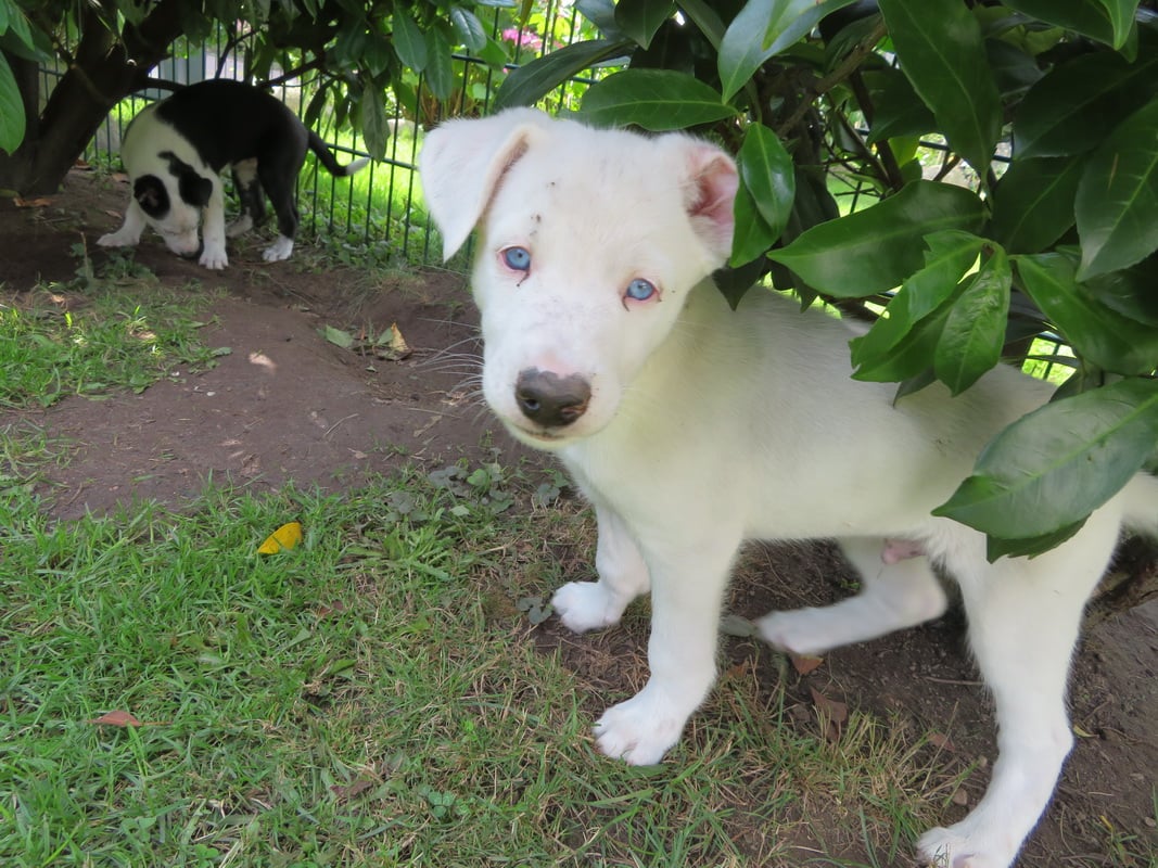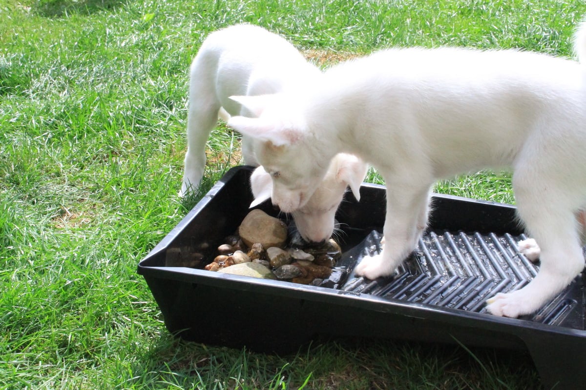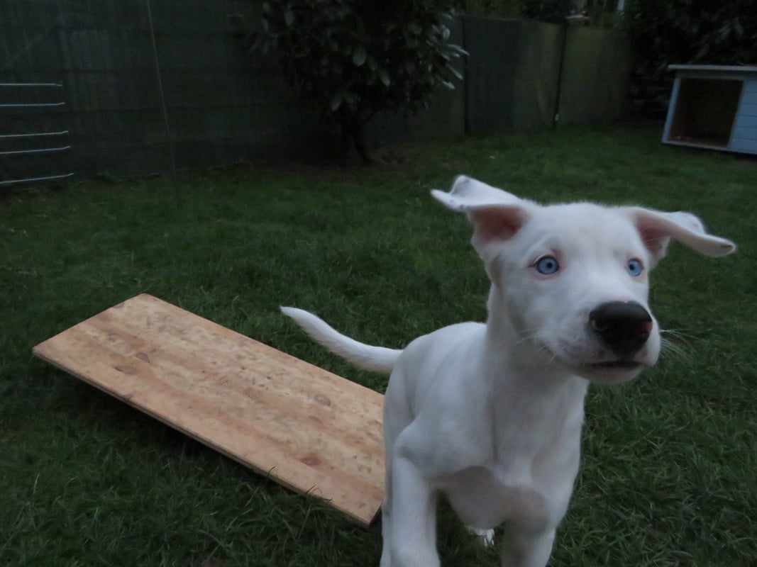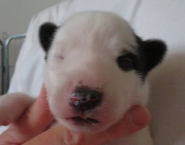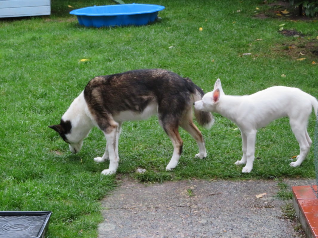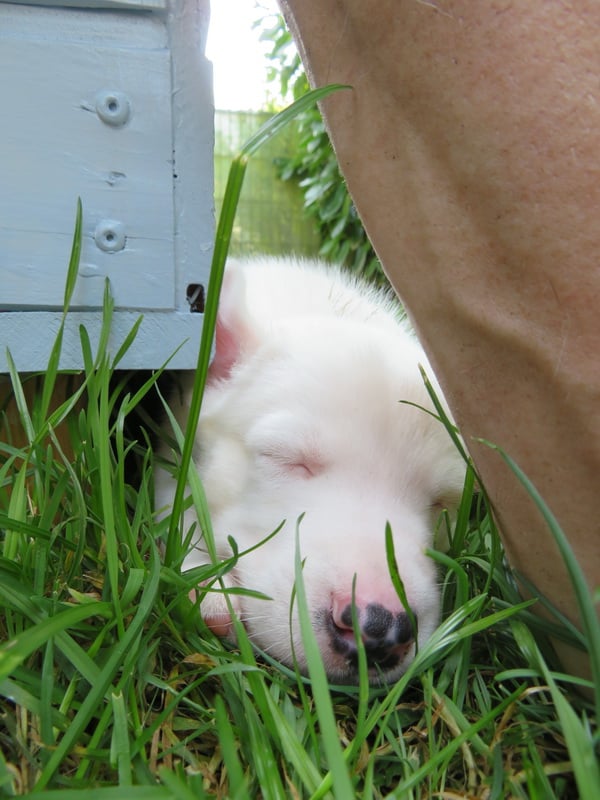 So ist Ayla jetzt stolze Mama von insgesamt drei zucksersüßen Welpen. Frosty, die weiße Hündin, Arik, der weiße Rüde, und Smacks, die schwarzweiße Hündin, die wegen des schwarzen Fells um das linke Auge auch die "Piratenbraut" genannt wird.