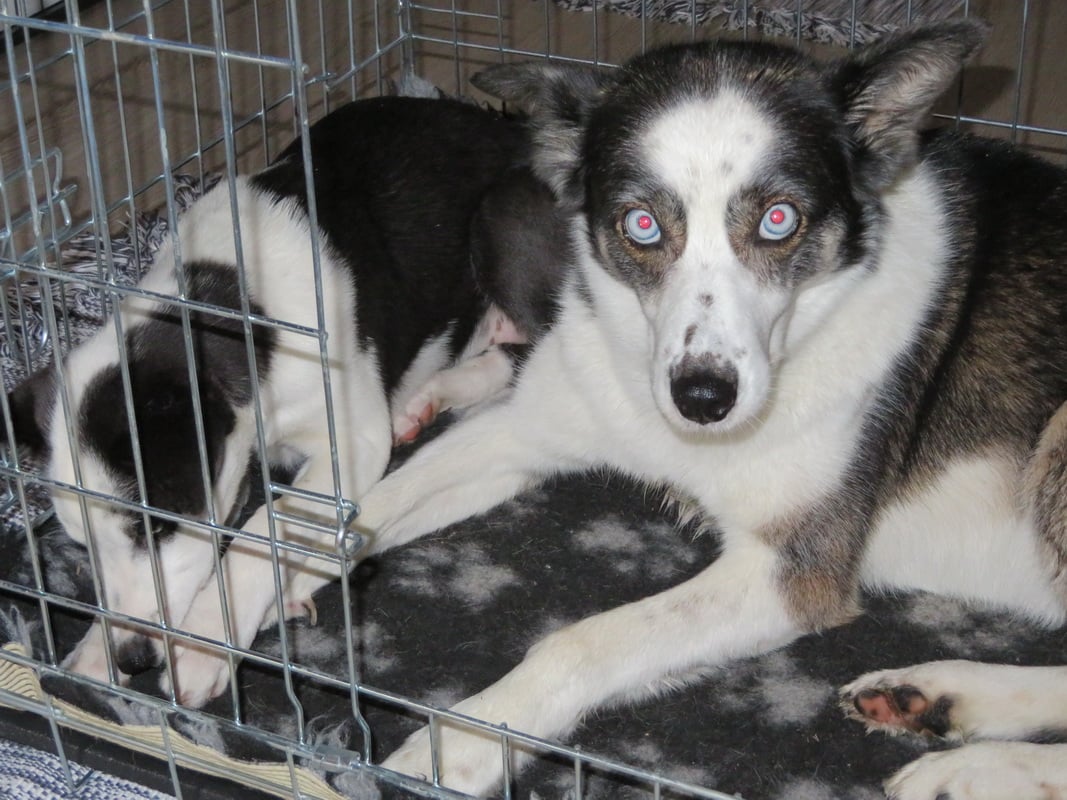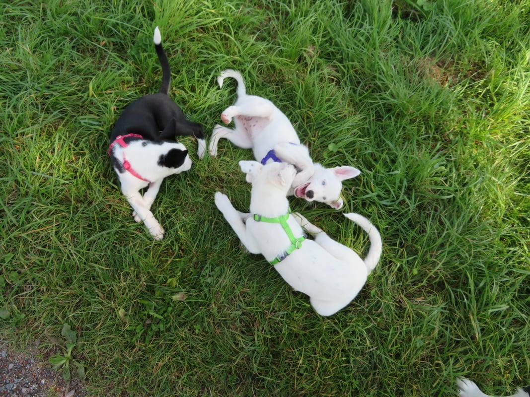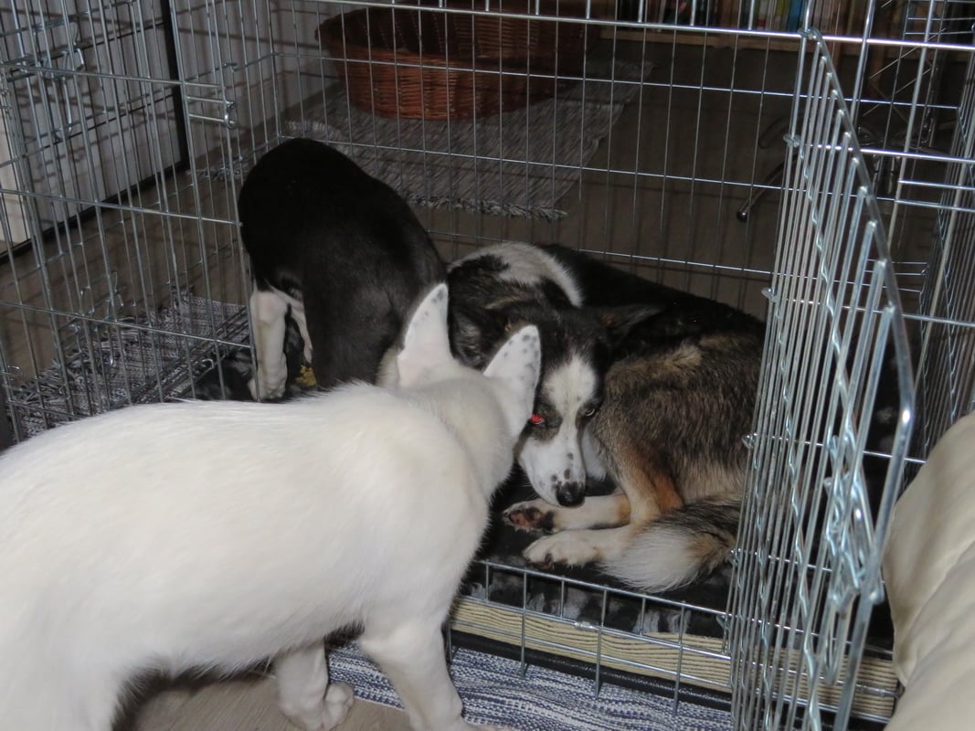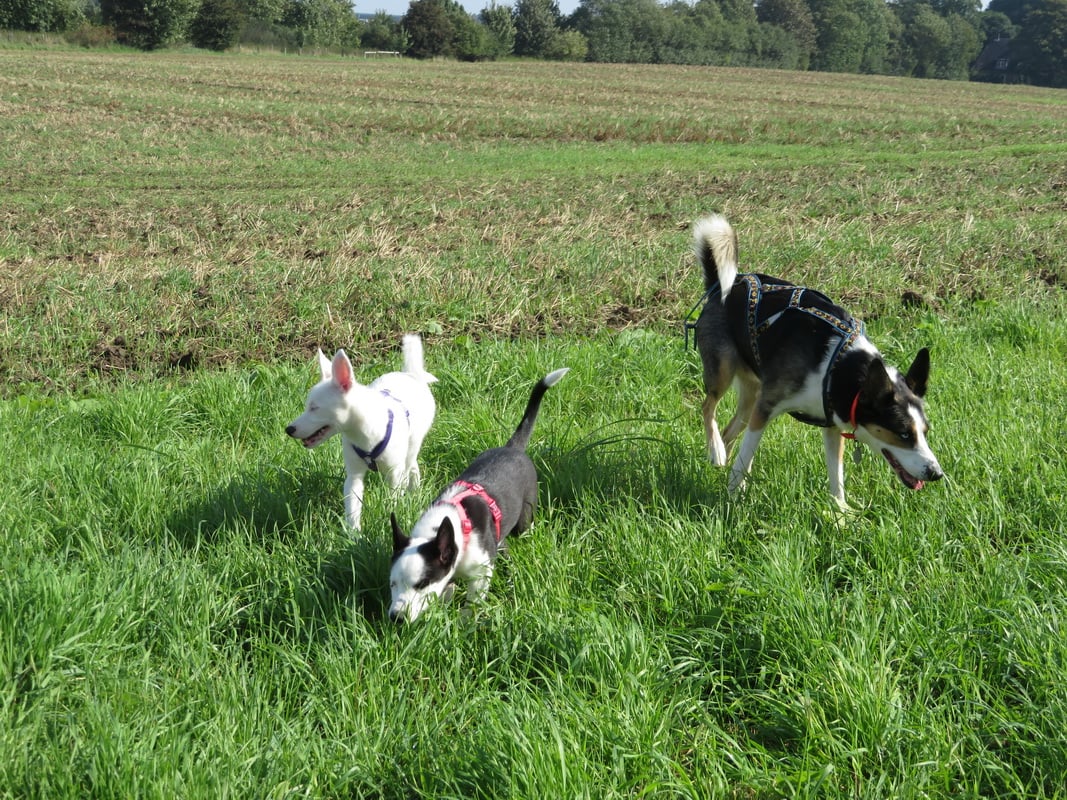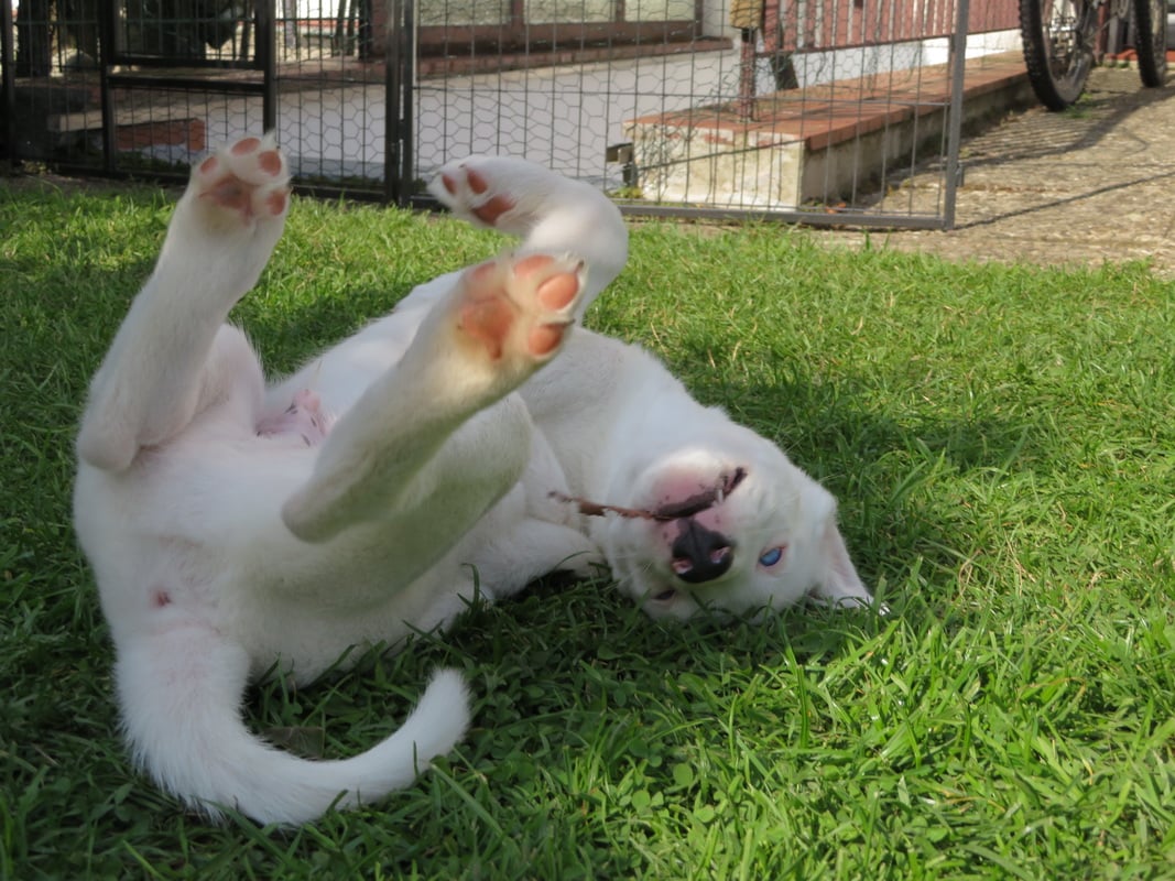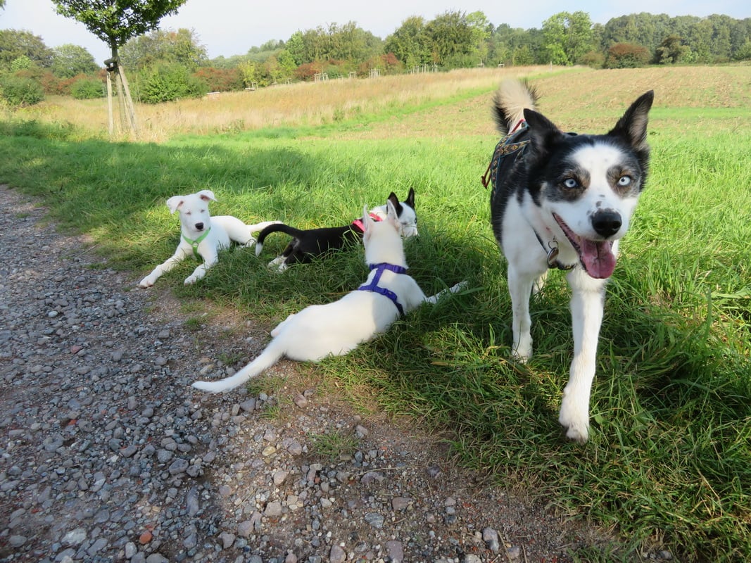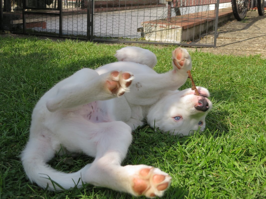 So ist Ayla jetzt stolze Mama von insgesamt drei zucksersüßen Welpen. Frosty, die weiße Hündin, Arik, der weiße Rüde, und Smacks, die schwarzweiße Hündin, die wegen des schwarzen Fells um das linke Auge auch die "Piratenbraut" genannt wird.