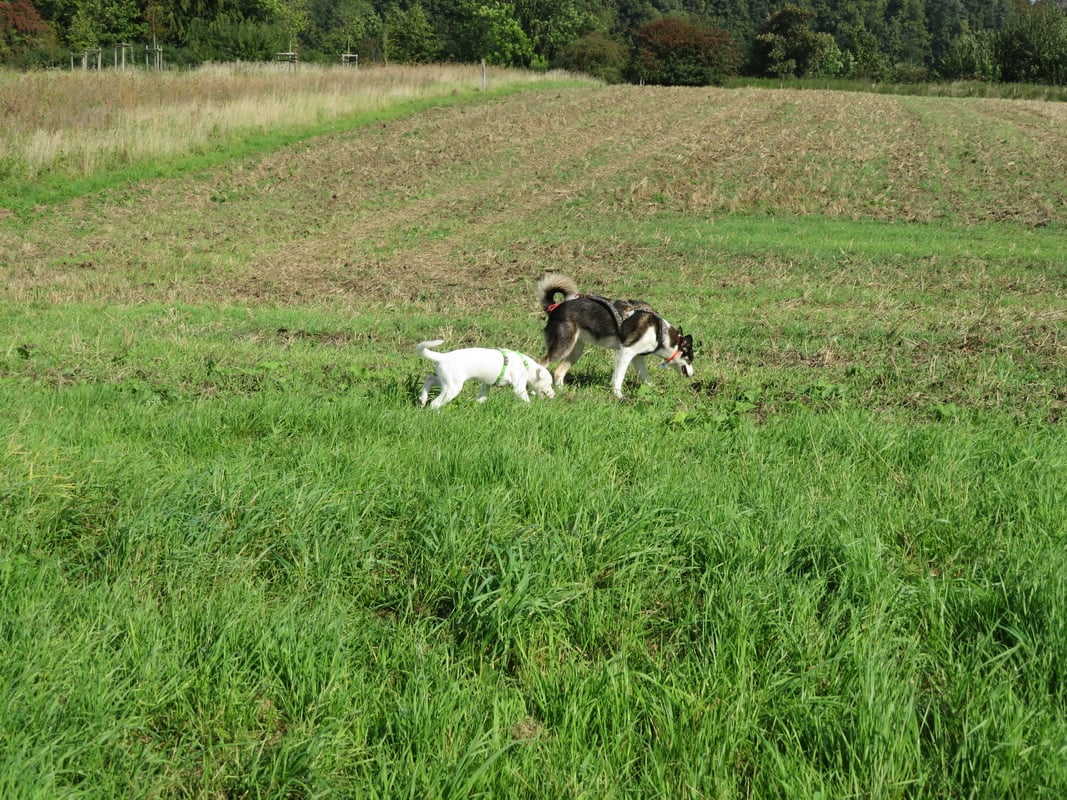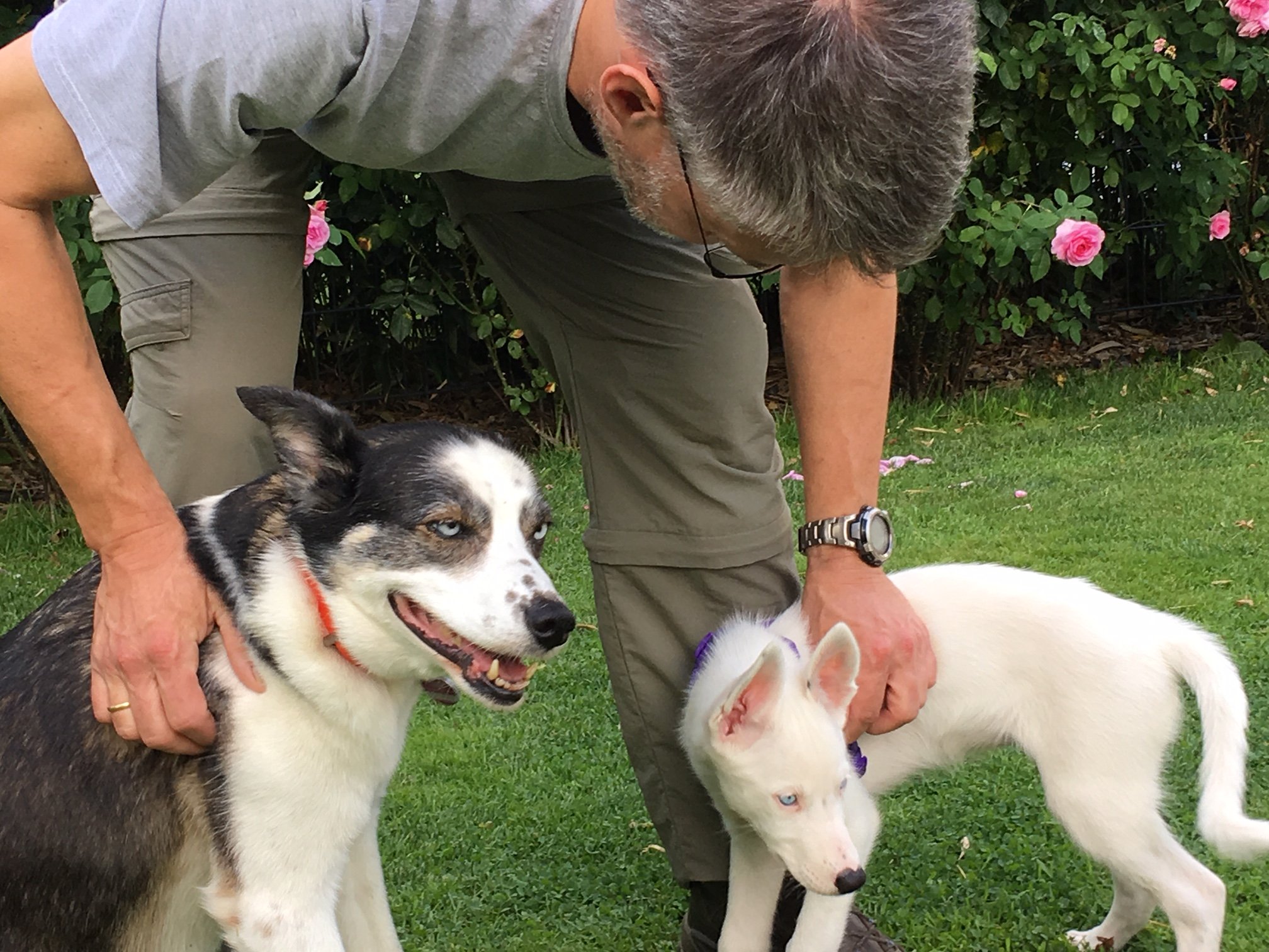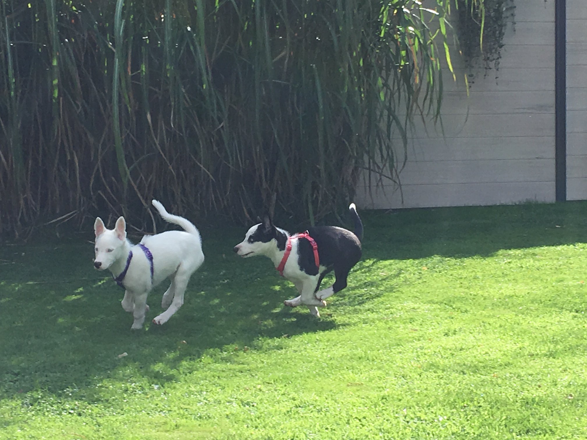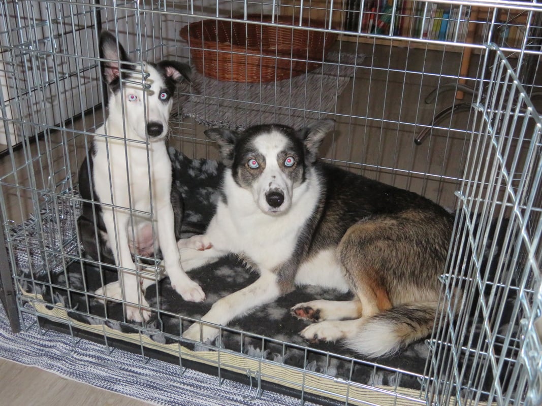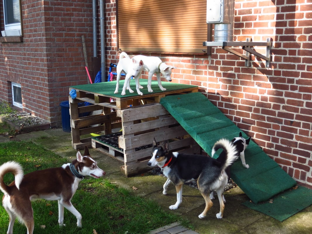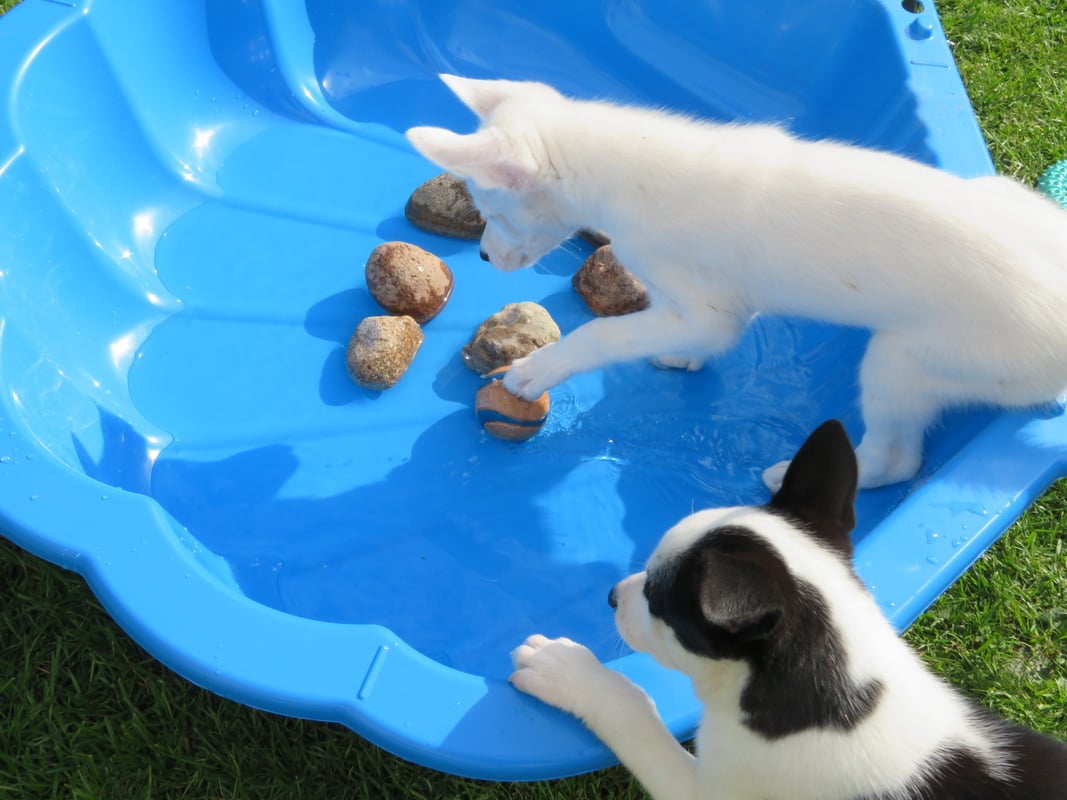 So ist Ayla jetzt stolze Mama von insgesamt drei zucksersüßen Welpen. Frosty, die weiße Hündin, Arik, der weiße Rüde, und Smacks, die schwarzweiße Hündin, die wegen des schwarzen Fells um das linke Auge auch die "Piratenbraut" genannt wird.