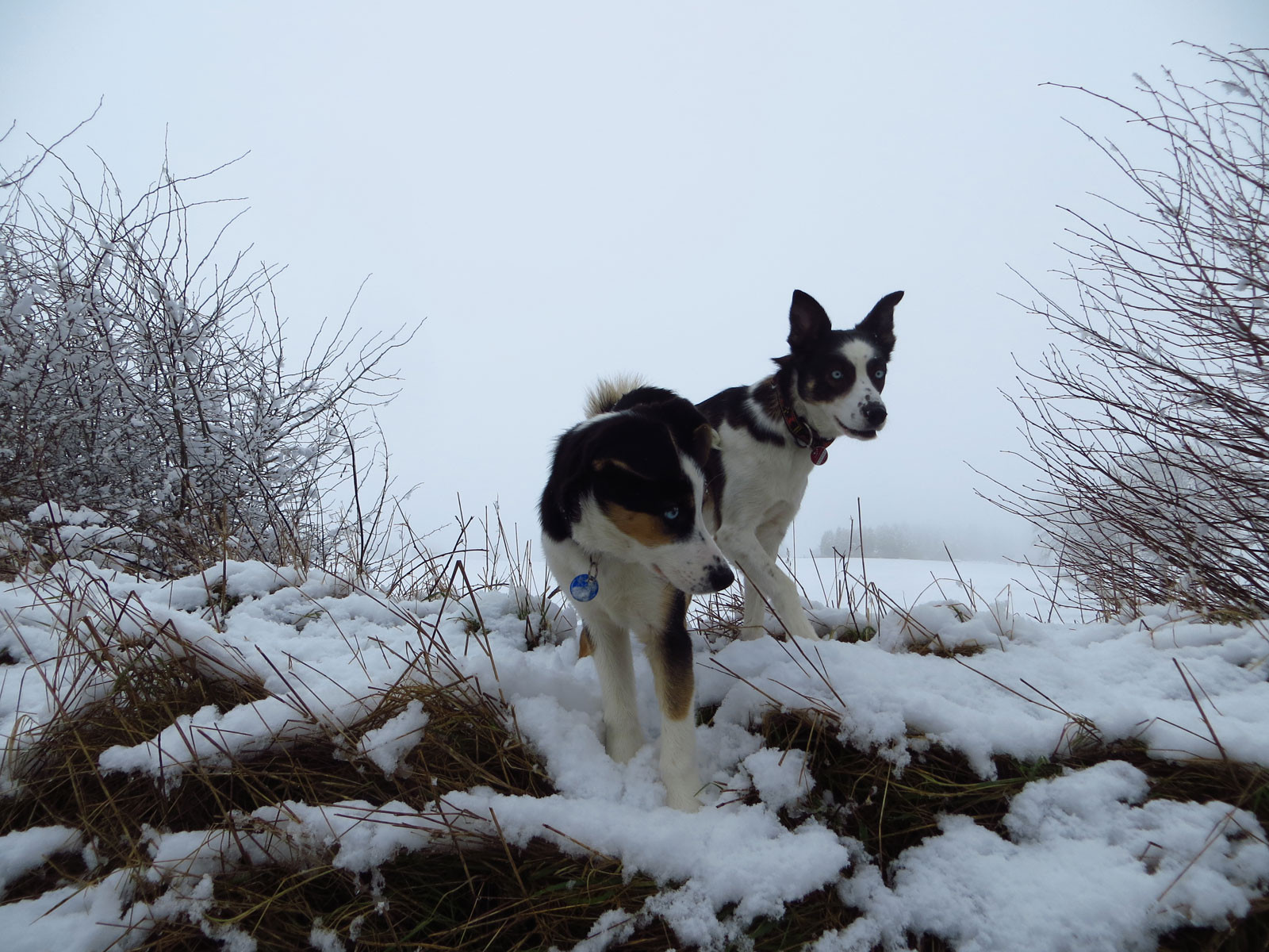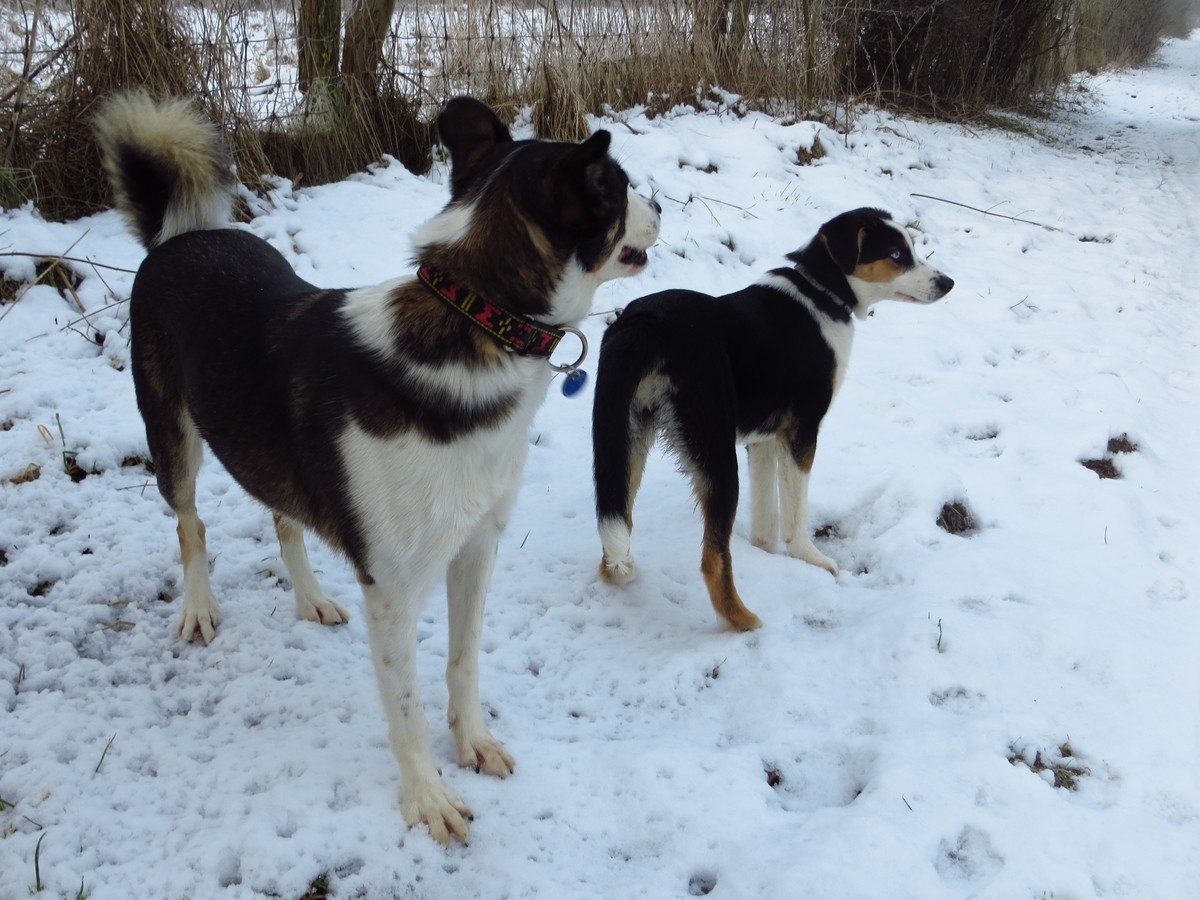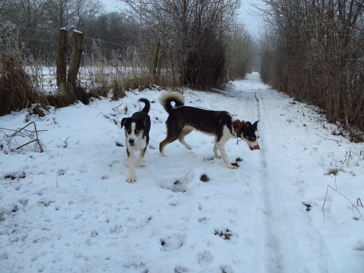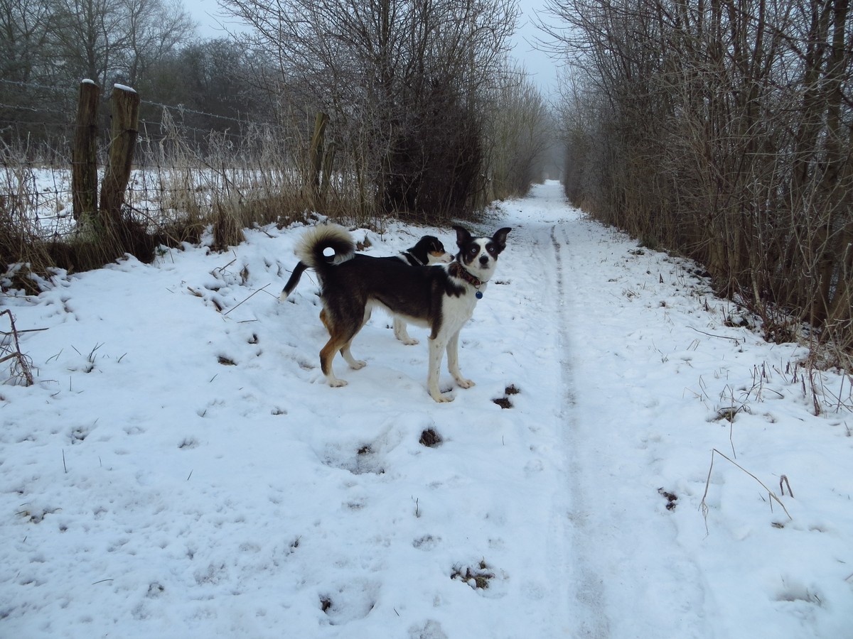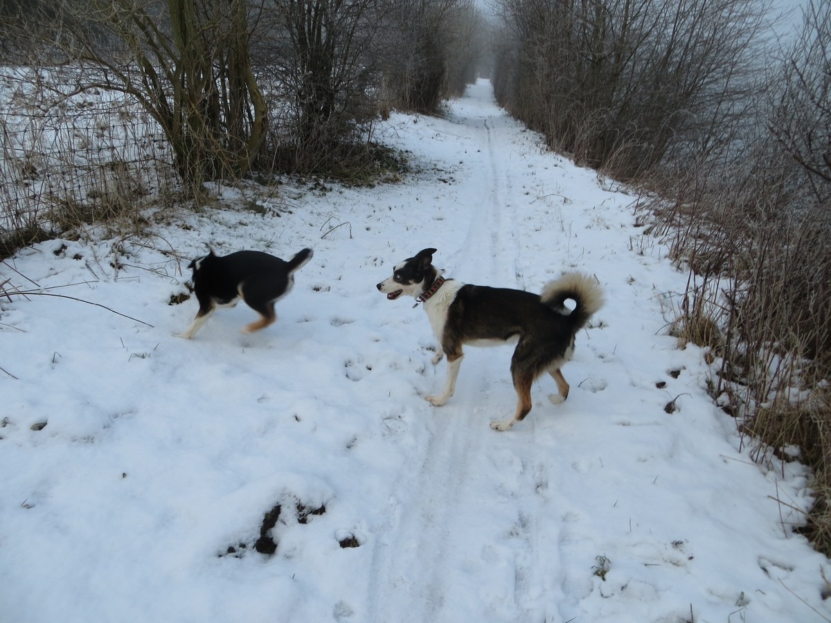 Bevor das große Tauen einsätzt, sind wir noch einmal durch die morgendliche Winterlanschaft gestreift. Die Doggies die ganze Zeit in Freilauf ... herrlich.