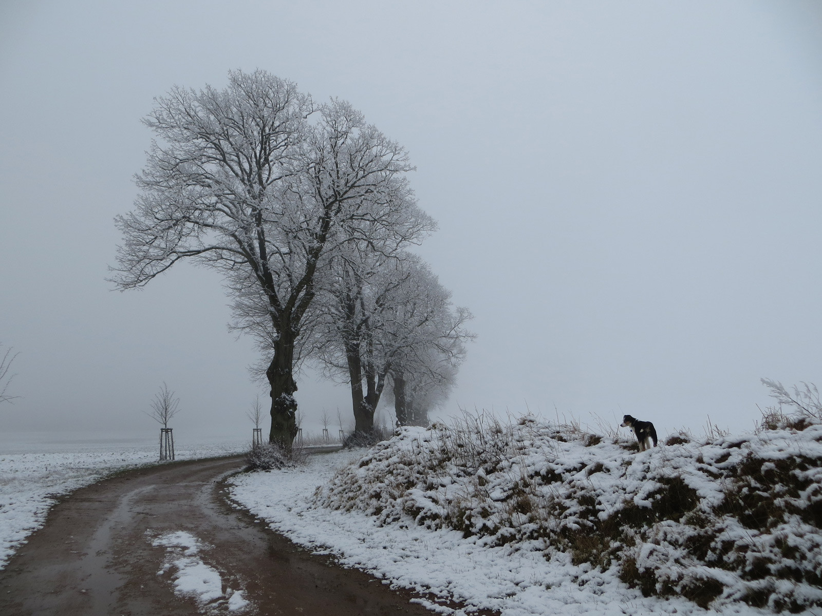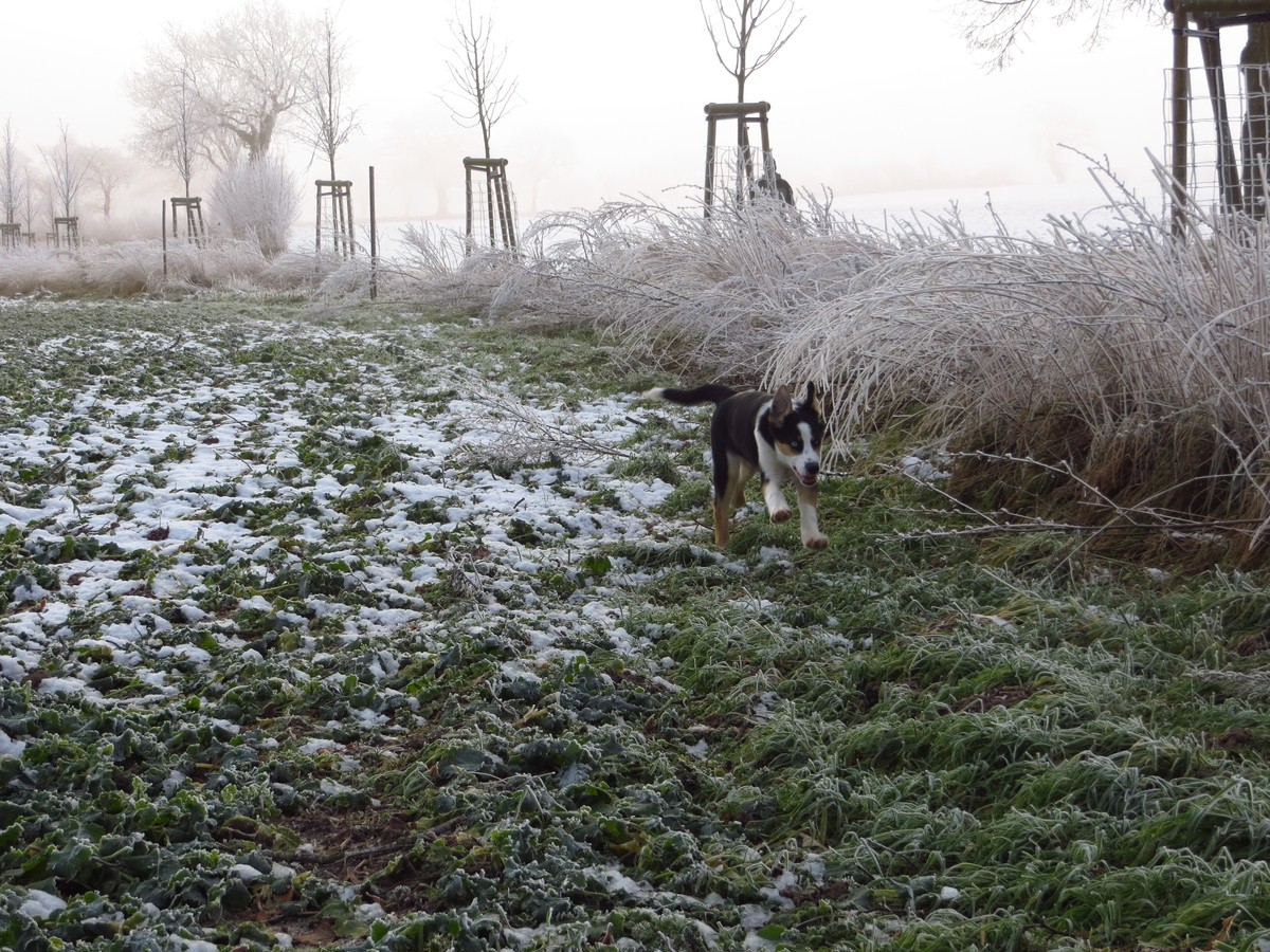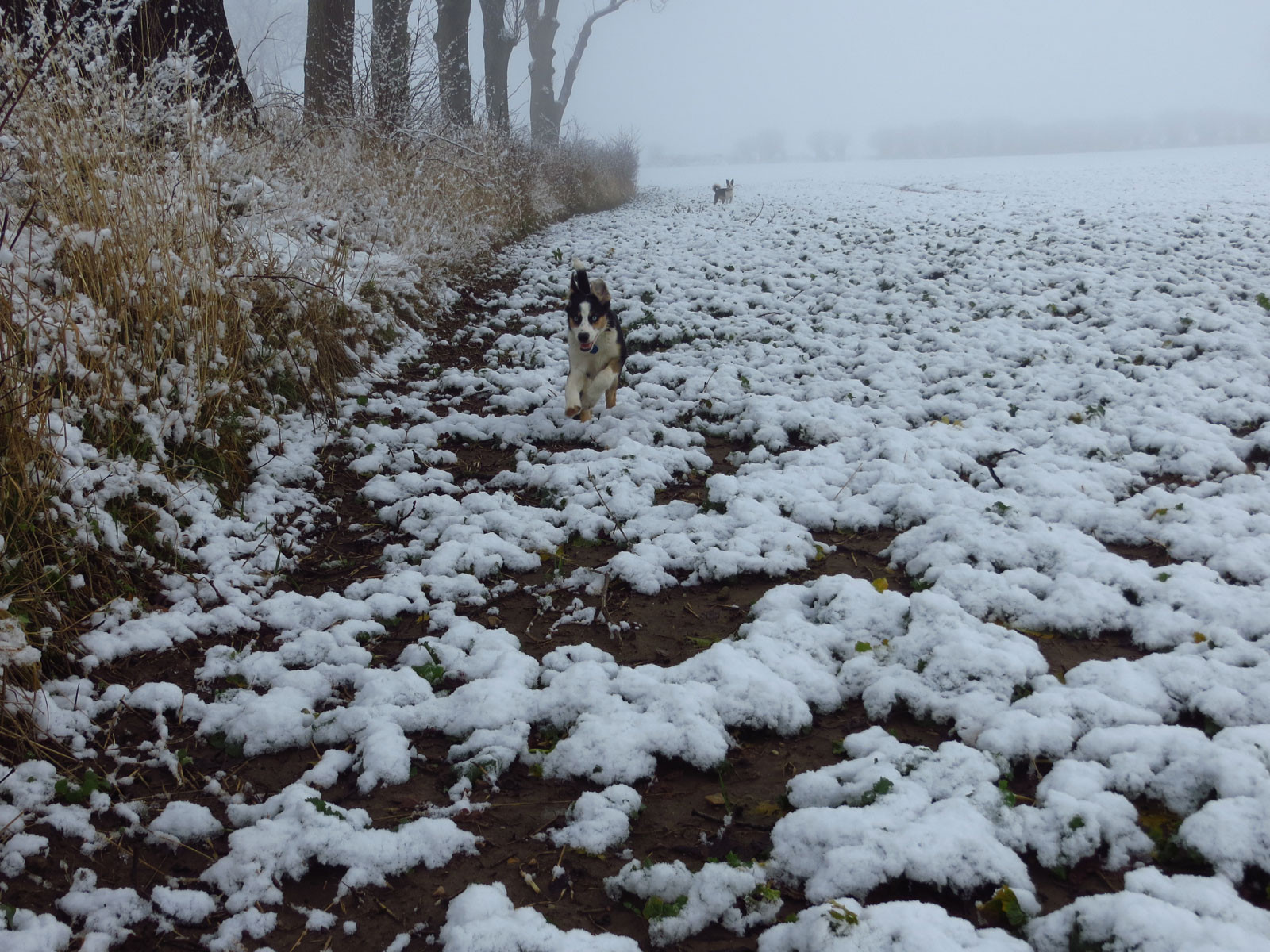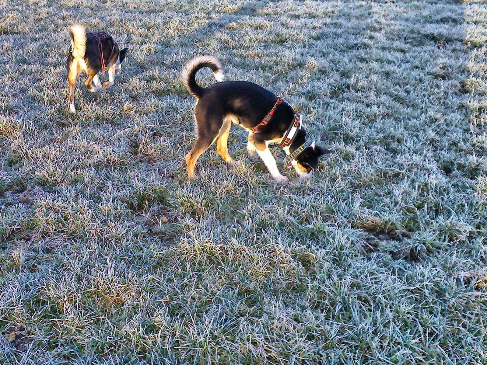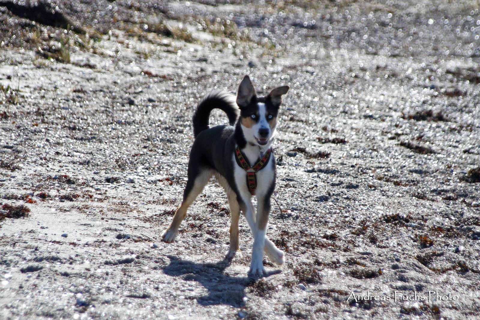 Bevor das große Tauen einsätzt, sind wir noch einmal durch die morgendliche Winterlanschaft gestreift. Die Doggies die ganze Zeit in Freilauf ... herrlich.