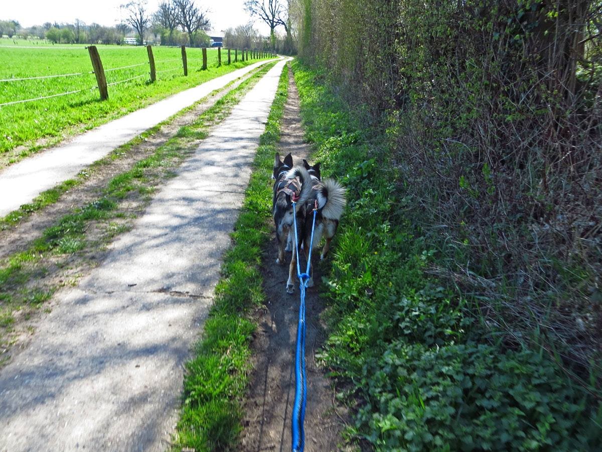 24.04.2015, 07:46 h, 6,5 Grad, Dogscooting, Gespannfahrt, 12.029 m, Schnitt 20,1 km/h, 30,4 km/h Ebene - nix los im Wald!(Videoausschnitt bei km 8,7 bis 9,0)